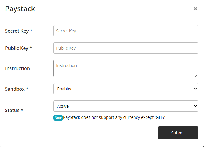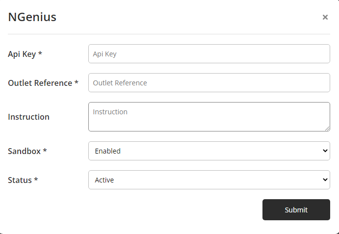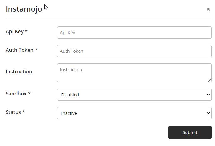 active, then click onsubmit. It will save the credentials and the payment method will be activated in the system.