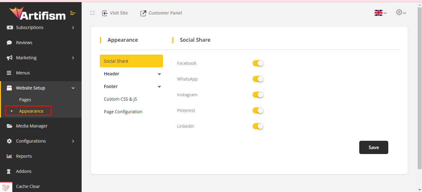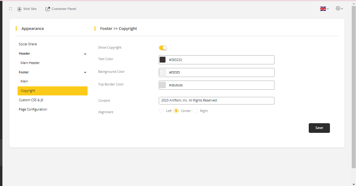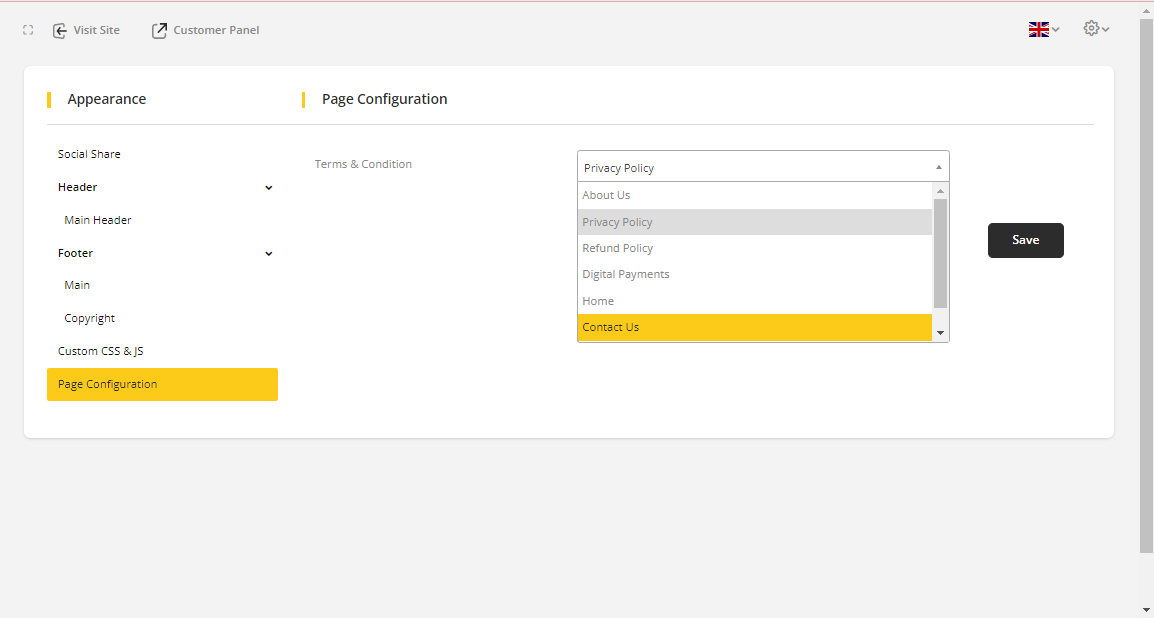 - Upload Logo for Sidebar & Customer Panel Logo. This logo will show on the customer dashboard.