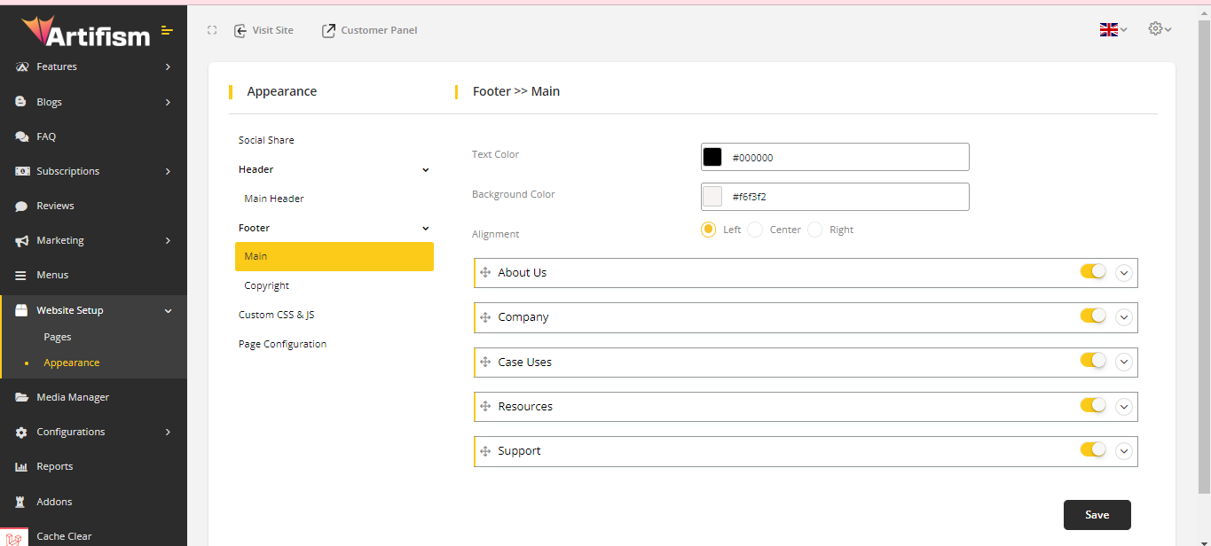 Go to Website Setup ⇒ Appearance from the sidebar.