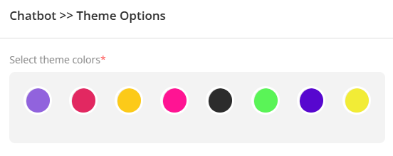On the theme option section, the admin can select the theme colors which a user can use while customizing a chatbot. The admin can change the theme colors to any colors and thus it will reflect on the user panel.