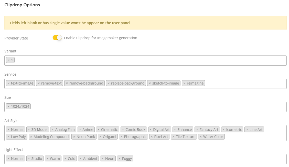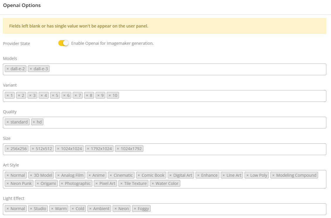 After enabling the provider, you need to configure the models as per your preferences which will be displayed in the front-end for the users to generate Image chat content. It is to keep in mind that if no models are available or a single model is available then that field will not be displayed on the customer panel.