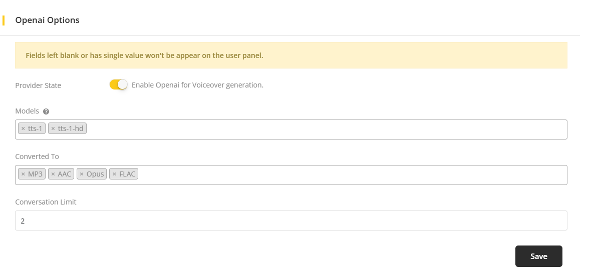 Finally, the admin has to configure the Conversation Limit for this provider. The value provided here will act as the maximum number of text blocks on the generation page.