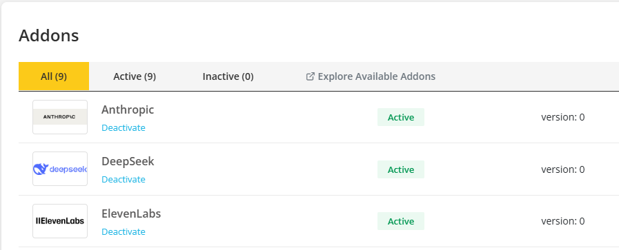 Please keep in mind that the Elvenlabs addon has to be activated in order to Manage the provider settings for Voice Clone feature.