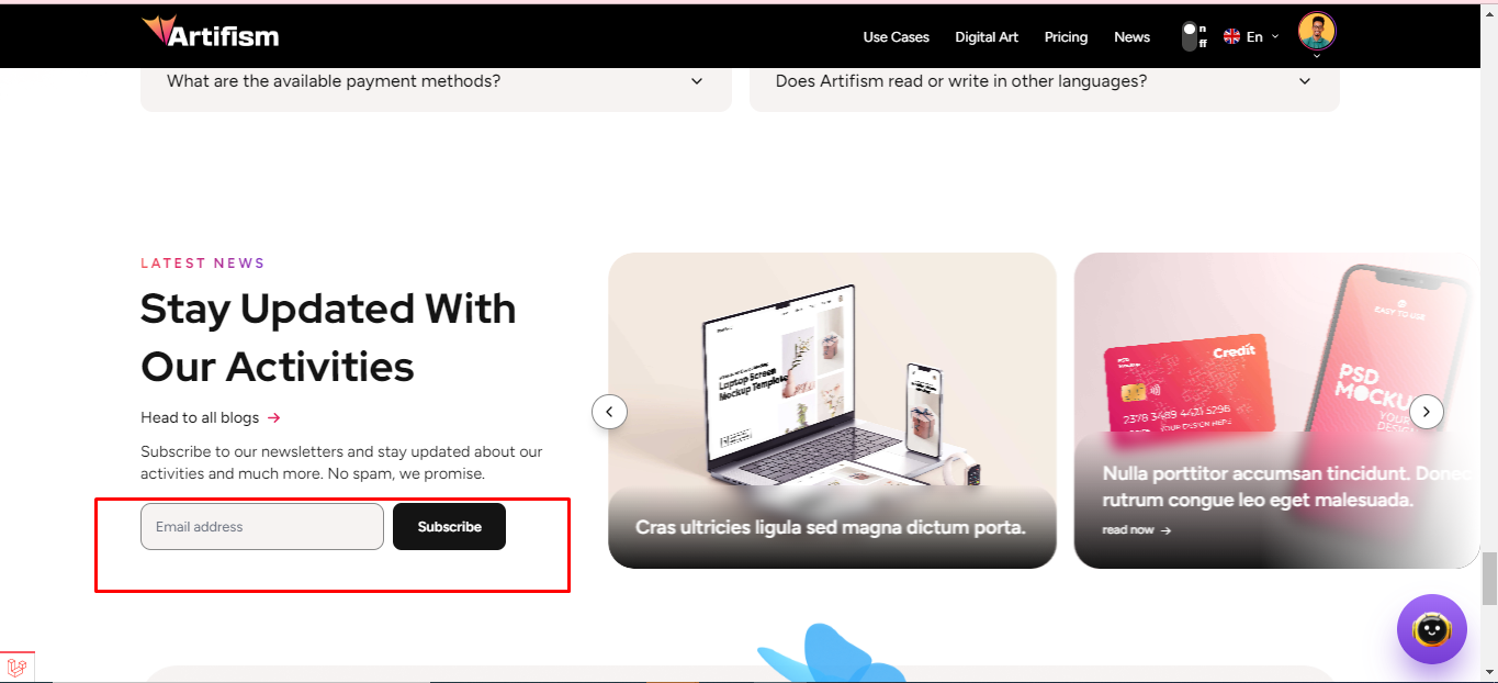 Go to the landing page subscriber section. Write the email address and click on Subscribe button.