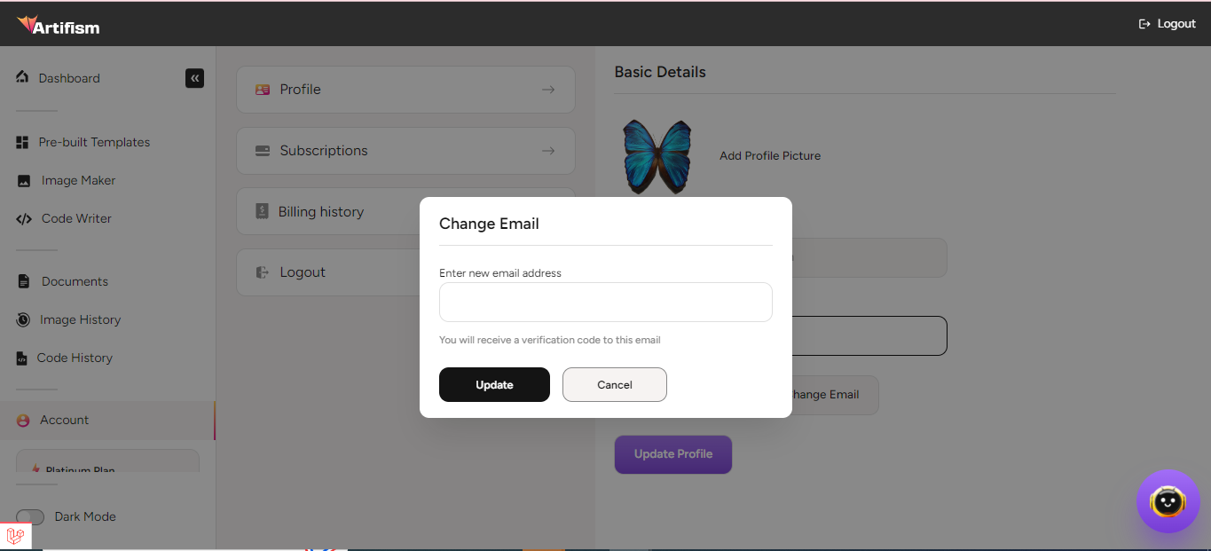 To change the email, click on the Change email button. After clicking on the button, it will show a change email form.
