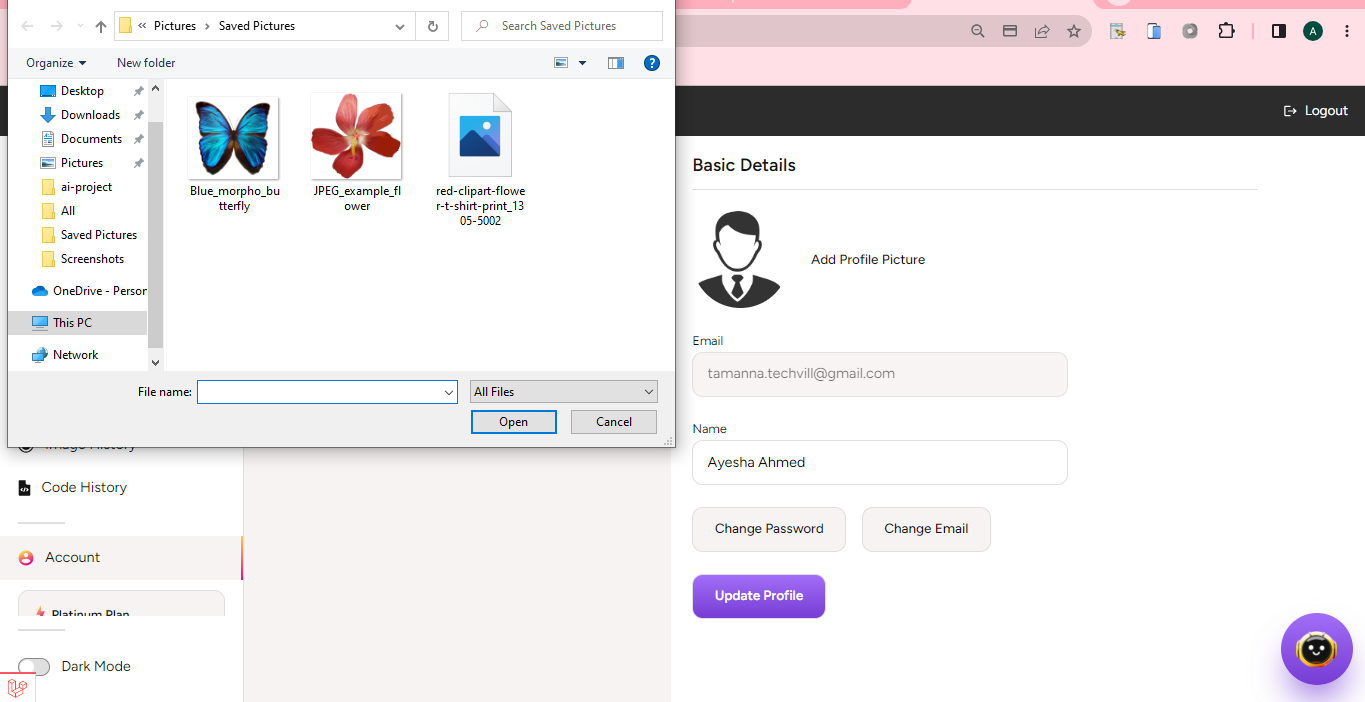 Select picture and click on the open button. After clicking on the open button, then the image uploaded successfully.