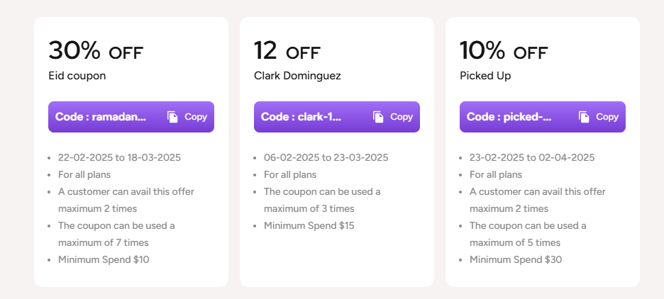 The user can also see the all Active coupons which is valid on the dashboard and can copy the code from there as well.