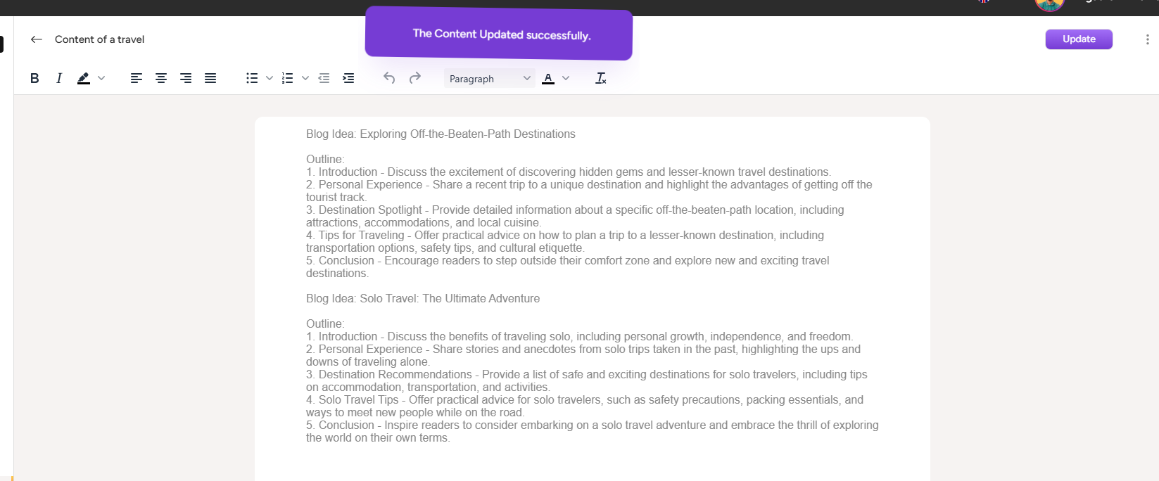 Change the information according to your wish and click on the update icon. After clicking on the update icon the user sees a success message.