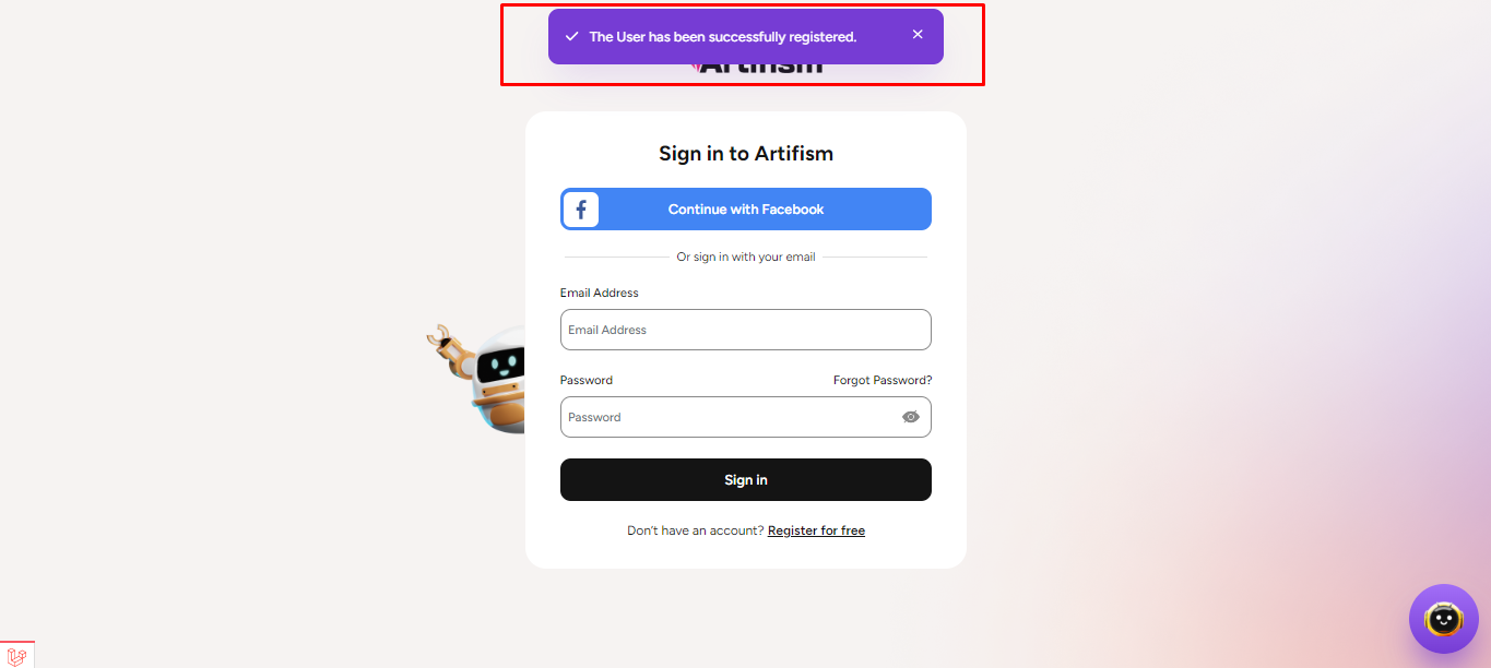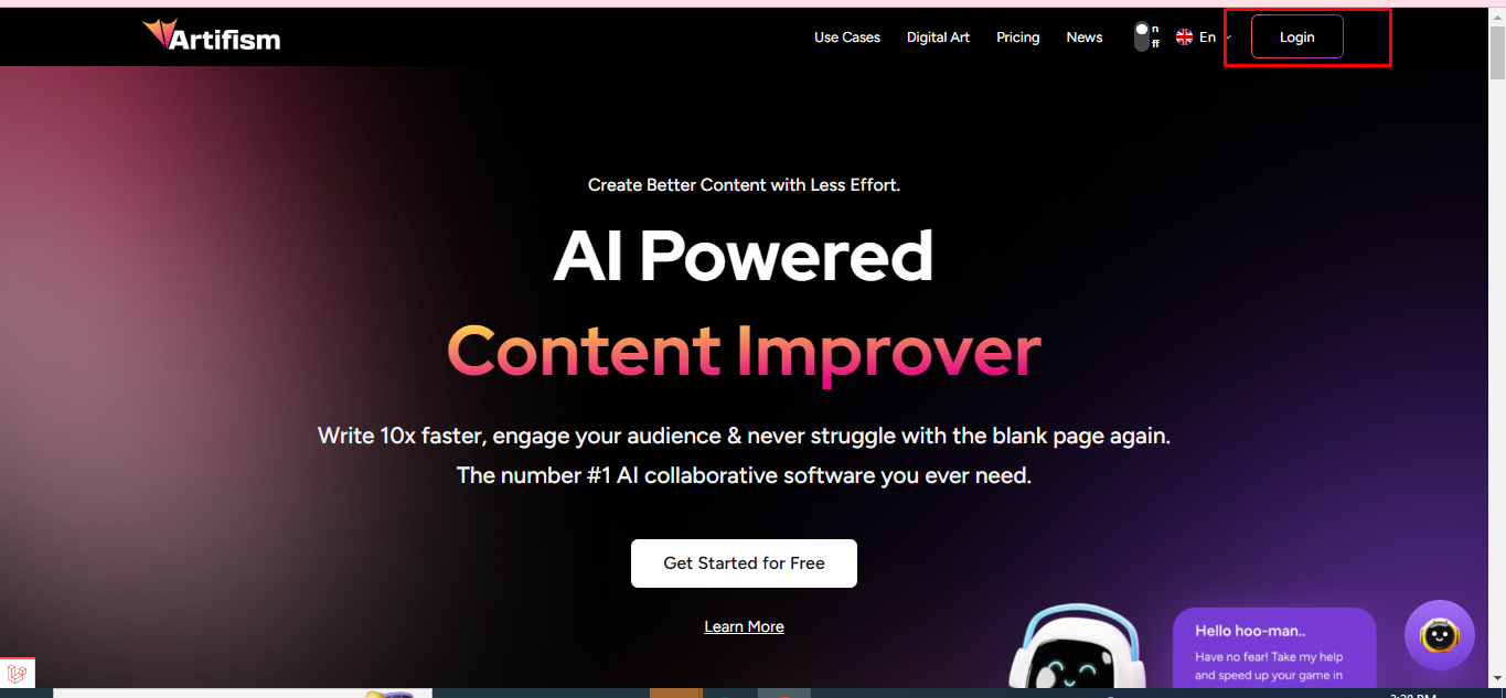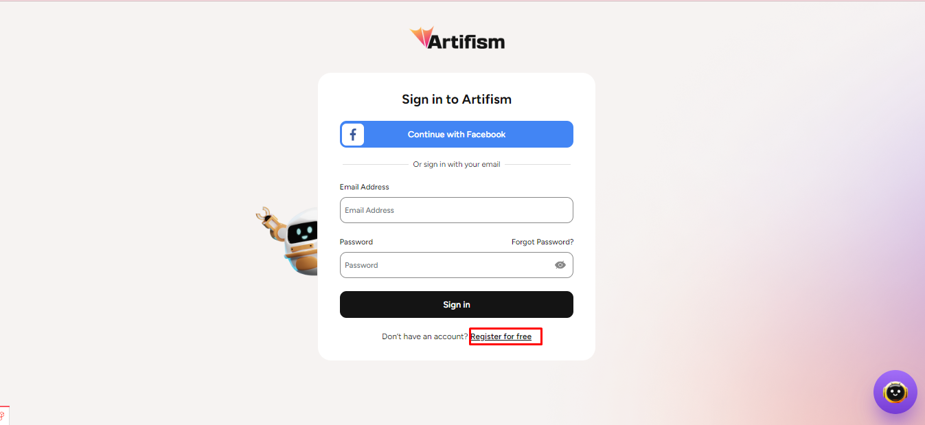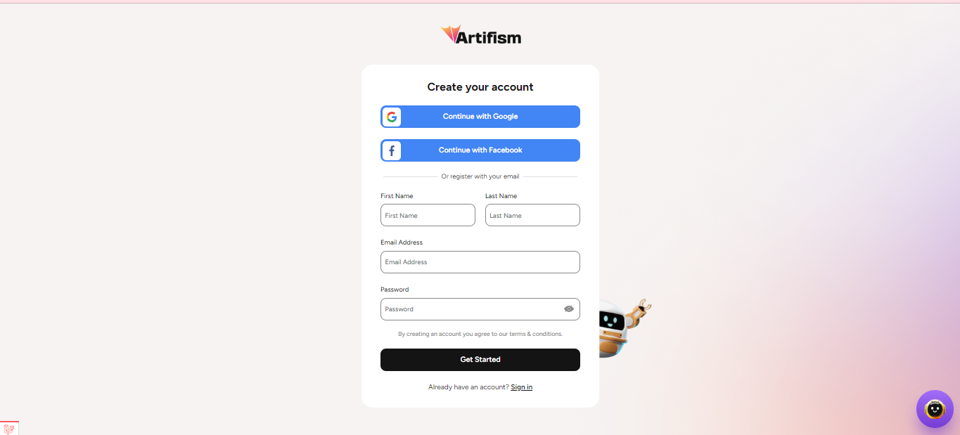To create an account, a user has to go to the sign-up page. Go to the Artifism landing page and click on the login button