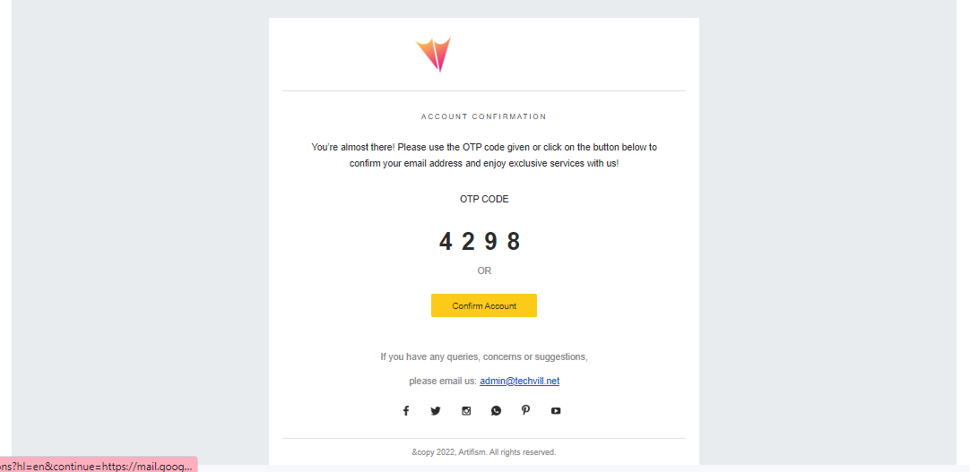 Once a user clicks on the verification link or provides the OTP that was sent to him/her on email, he/she will be verified. Then the user has to click on Confirm Account. It showed a successful register message. Now, a user can log in to this site.
