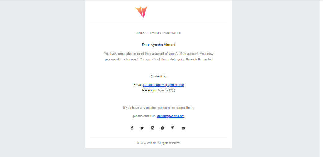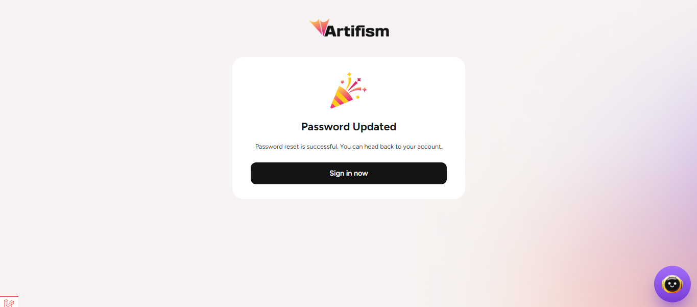 Upon clicking the update button, the user successfully updates their password and receives a corresponding success message. Click on the "Sign In Now" button to log in with the newly updated password. Additionally, an email will be sent to the user to inform them about the password update process.